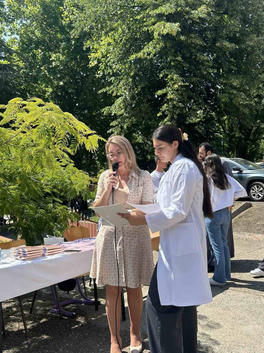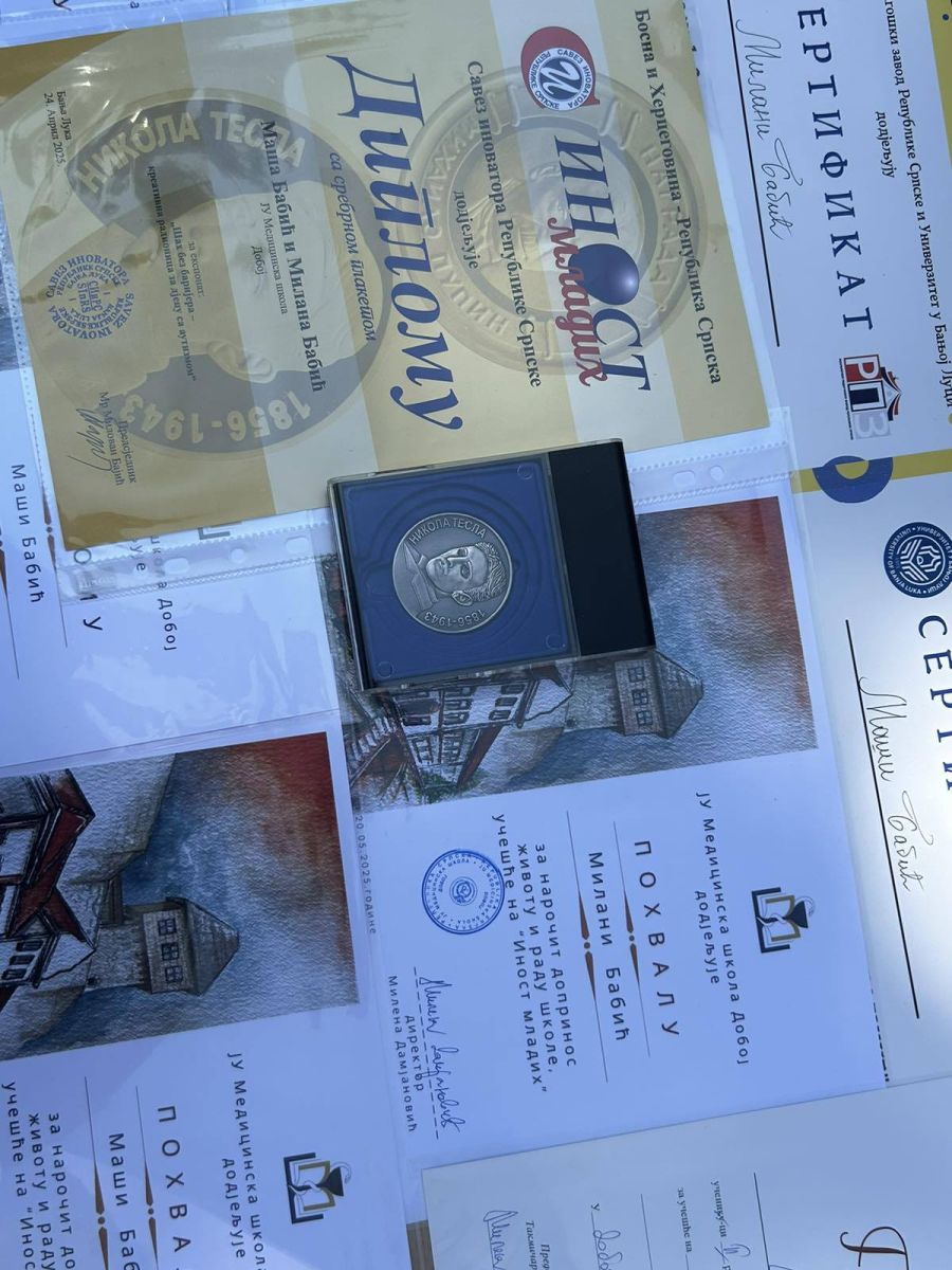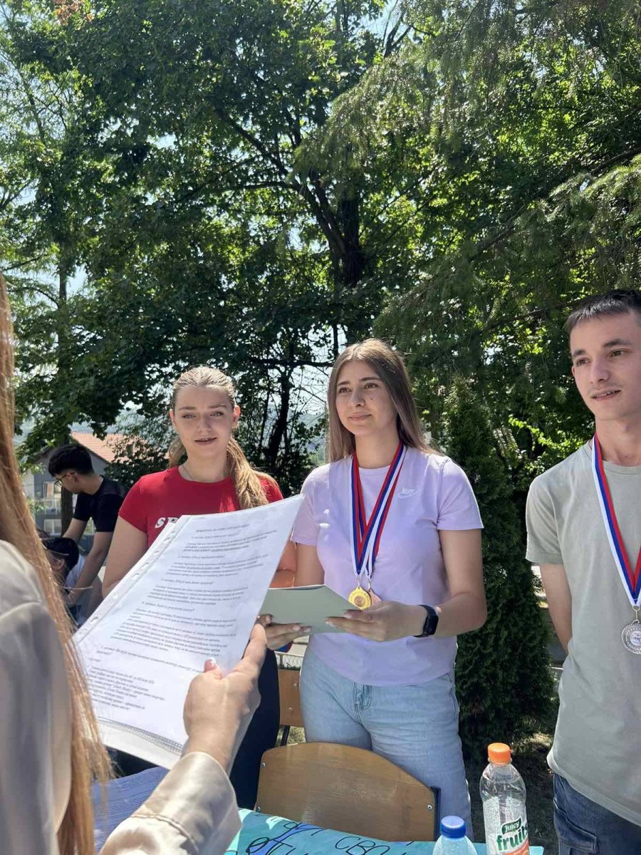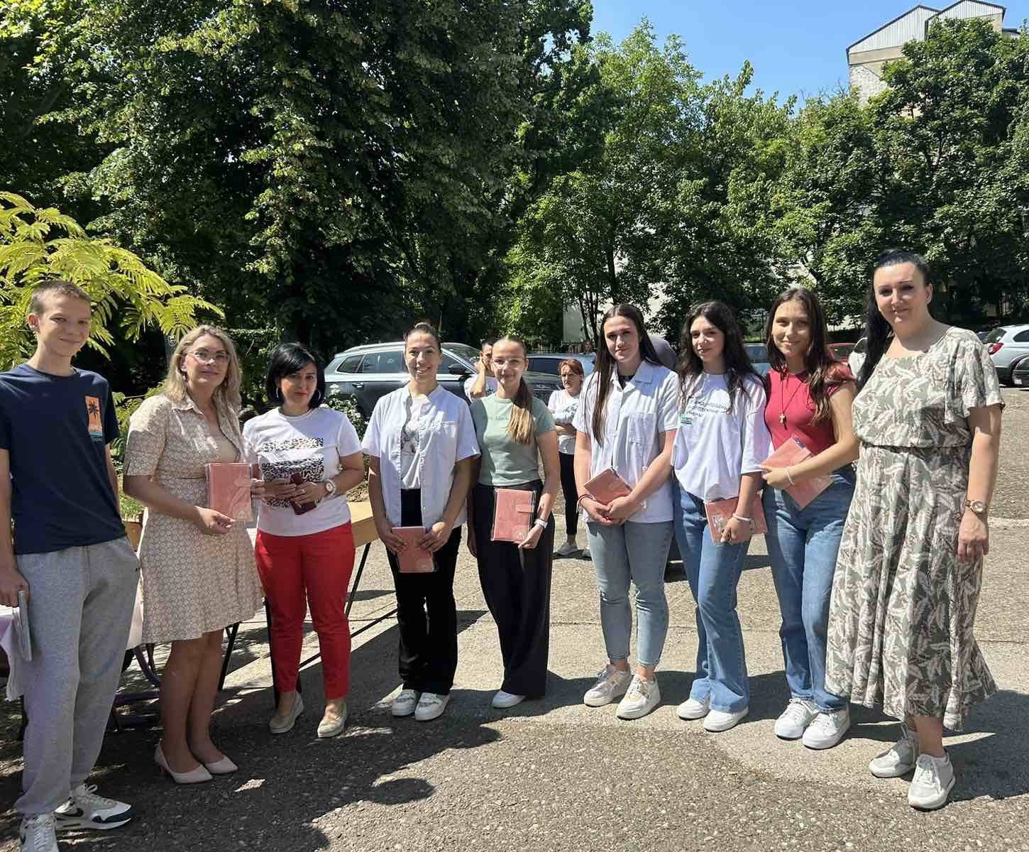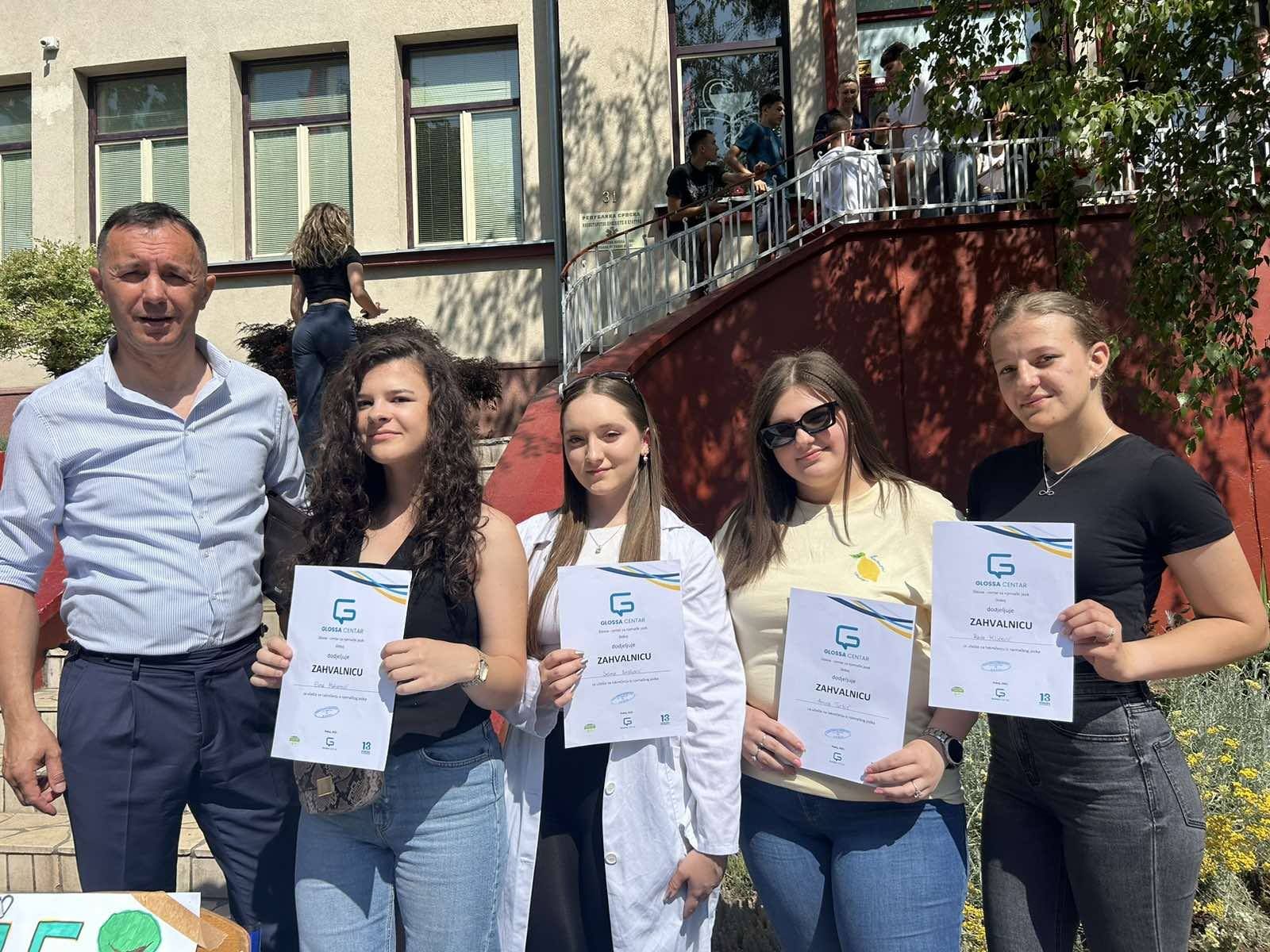 Данас су уручене и награде за учешће ученика на Конкурсу за избор најбољег дневника практичне наставе сљедећим редослиједом: Мићо Михајловић, I2, Теодора Дамјановић, II2, Тијана Ивановић, I3, Софија Лазић, I5, Анела Бегиновић, II4, Катарина Драгичевић, II4, Драгана Илић, II4, Анела Бегиновић II4, Александра Ковачевић, II5, Александра Божић, II5, Милица Марковић, II5, Адријана Алексић, III3.