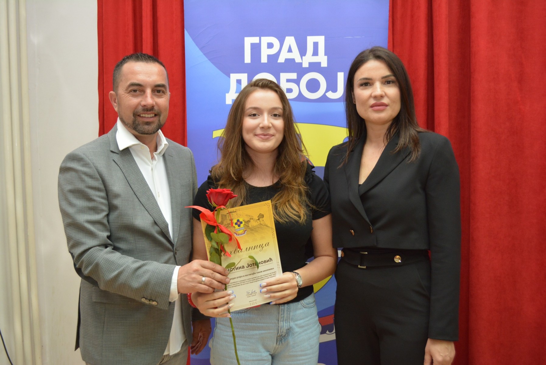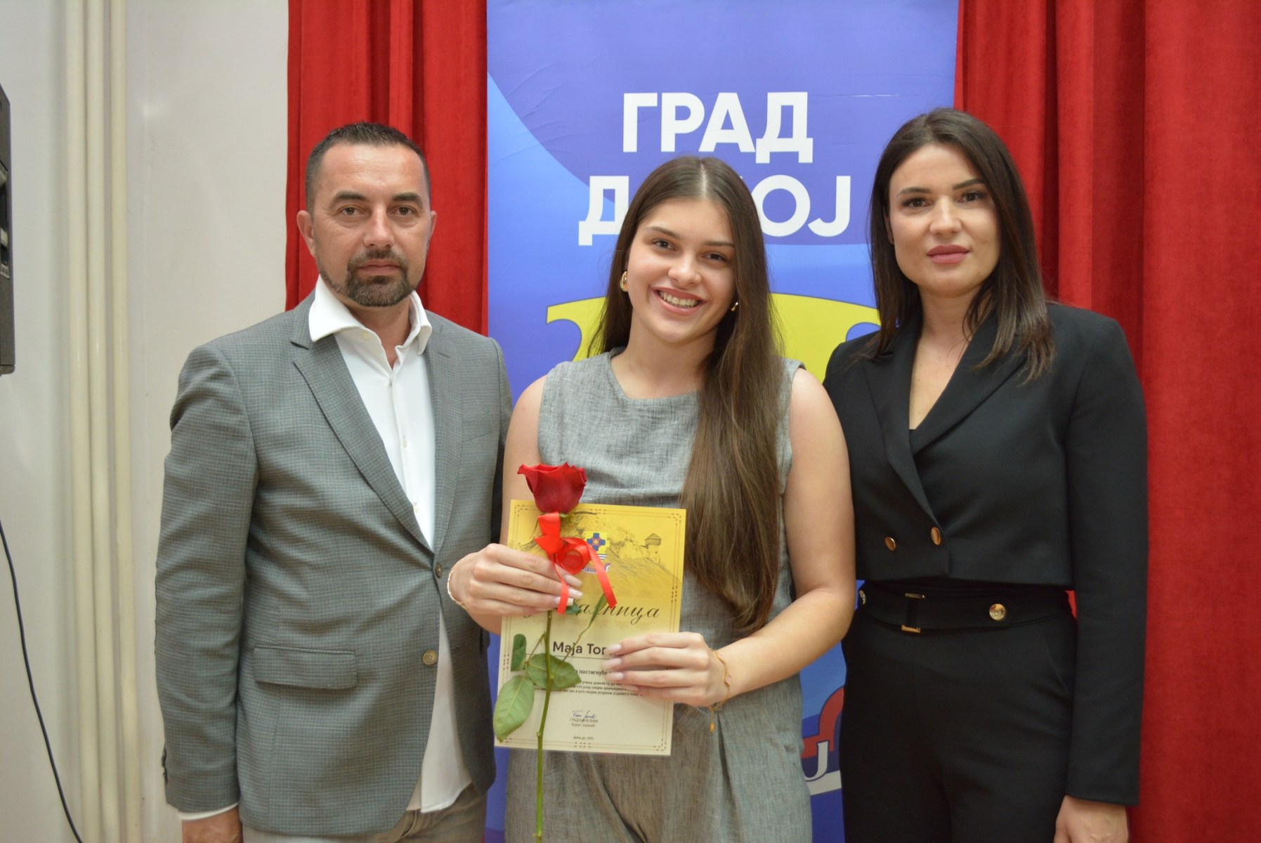 Наши вуковци су данас присуствовали свечаном пријему код градоначелника Града Добој, господина Бориса Јеринића и замјеника градоначелника, госпође Дијане Каленић, који су им овом приликом уручили захвалнице и симболичне новчане награде. Градска управа Града Добој подсјећа на значај образовања, залагања и одговорности и мотивише ученике да бирају пут рада и знања као основу за лични успјех и бољу будућност заједнице.