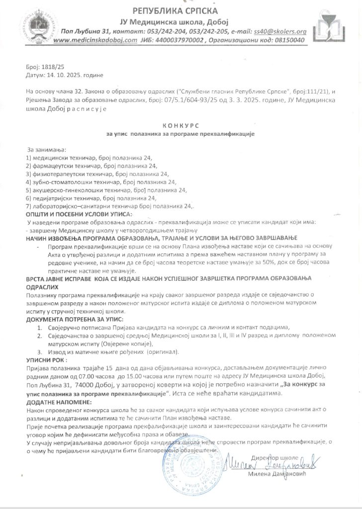 Конкурс за упис полазника за програме преквалификације
