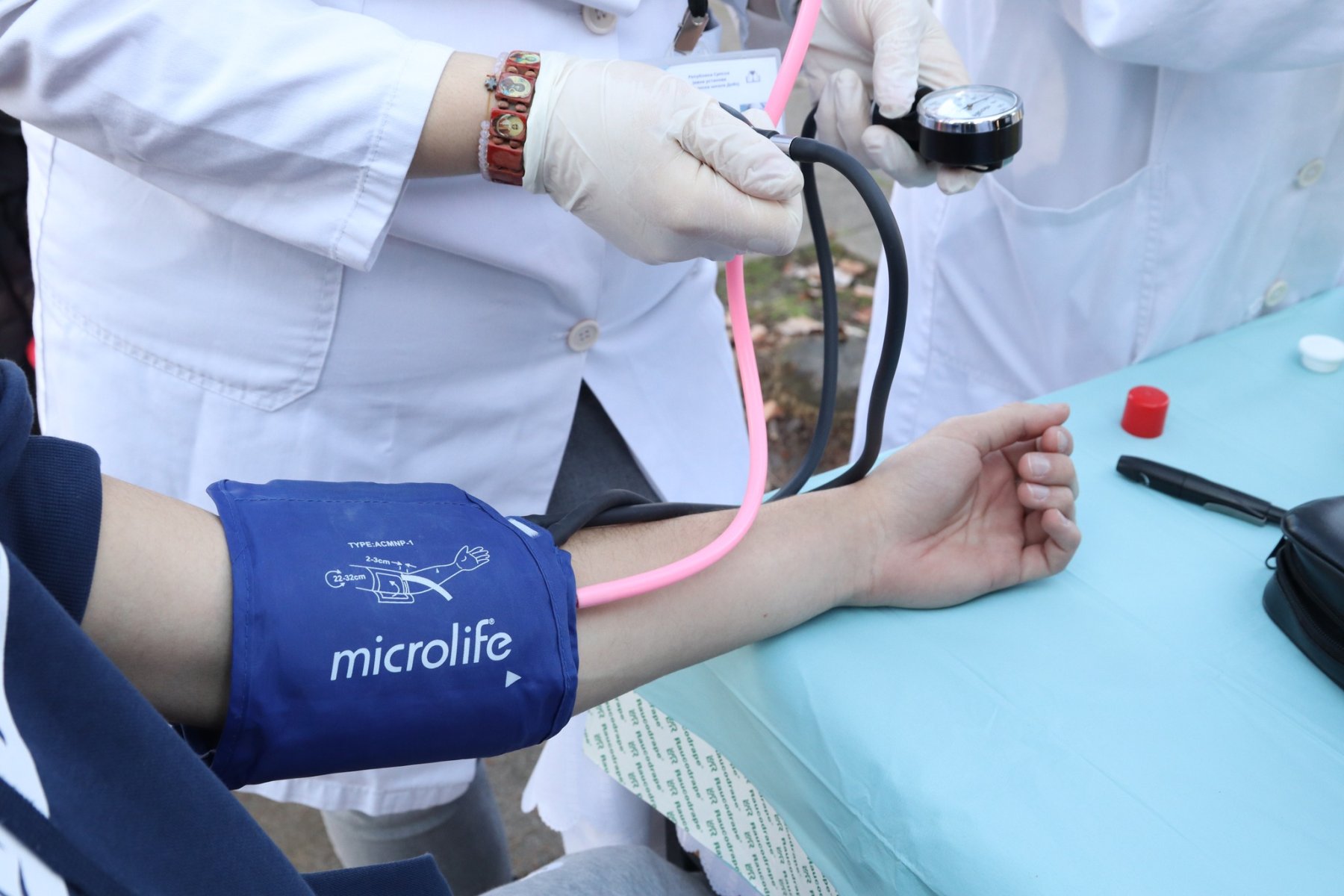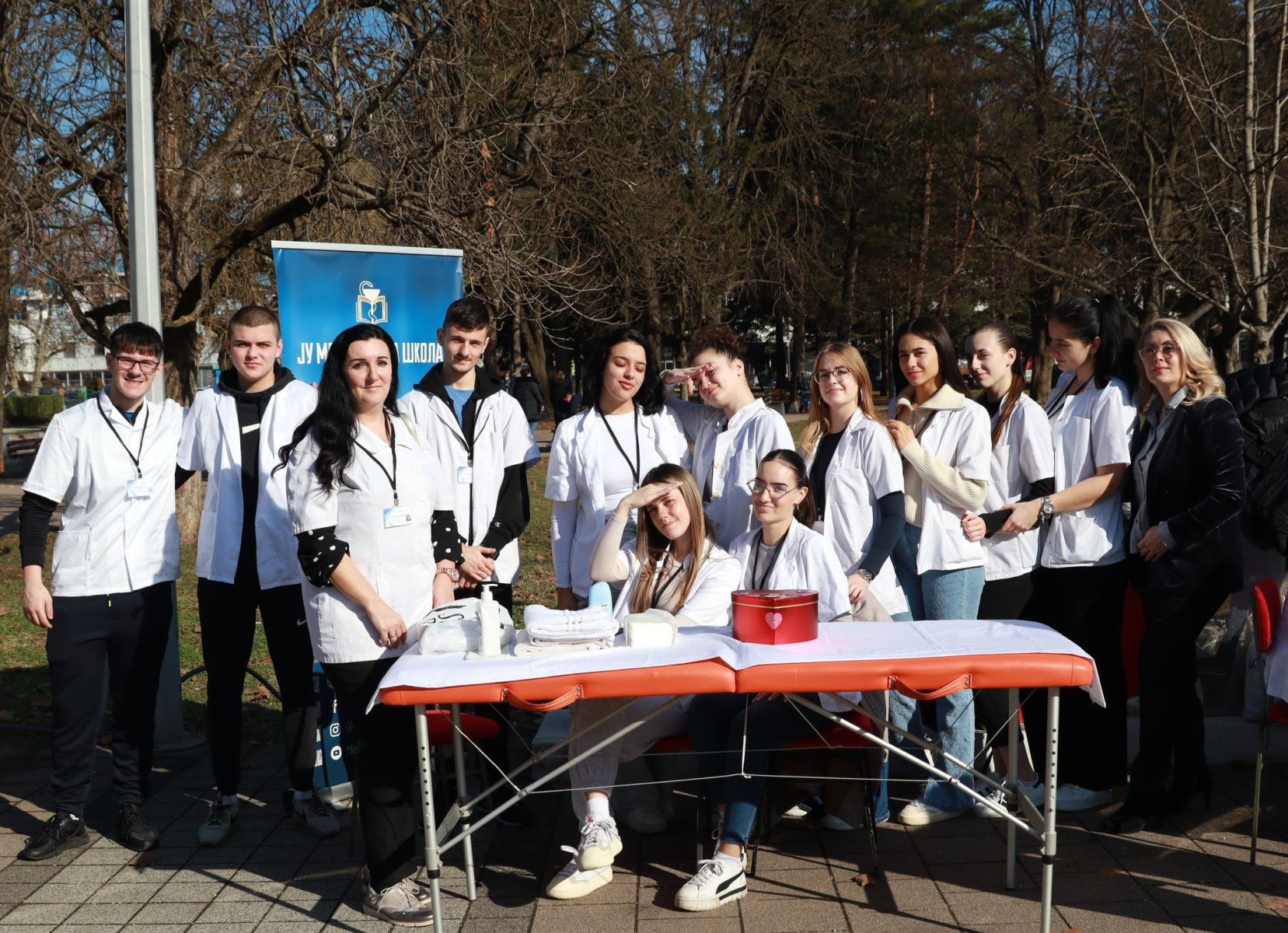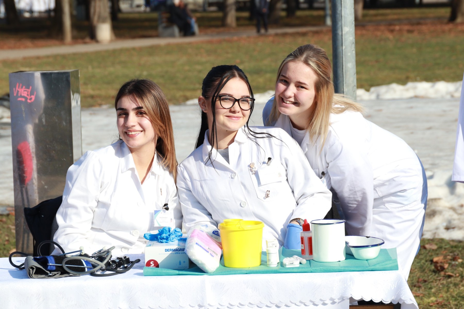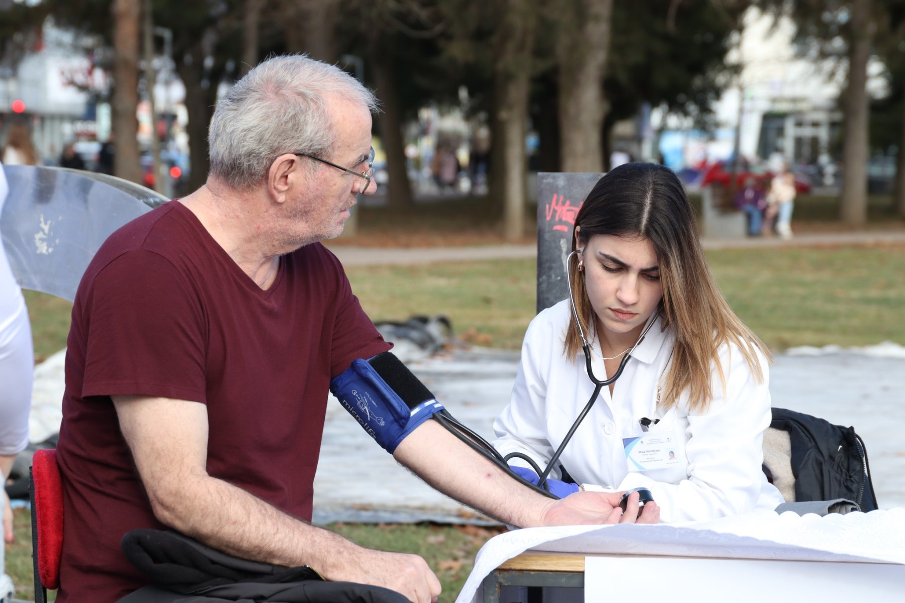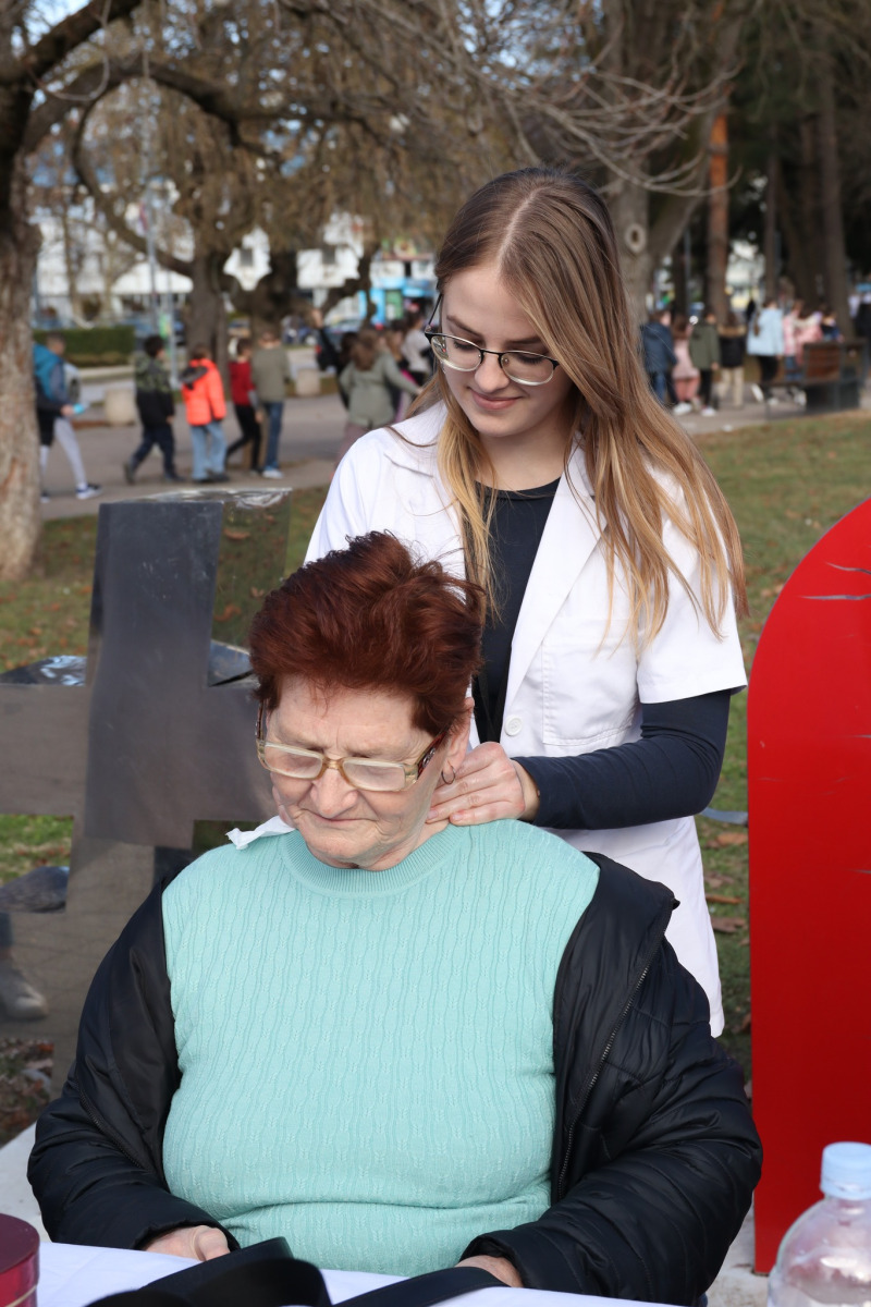 Ученици одјељења IV3, занимање медицински техничар, присутним грађанима су мјерили крвни притисак и шећер.